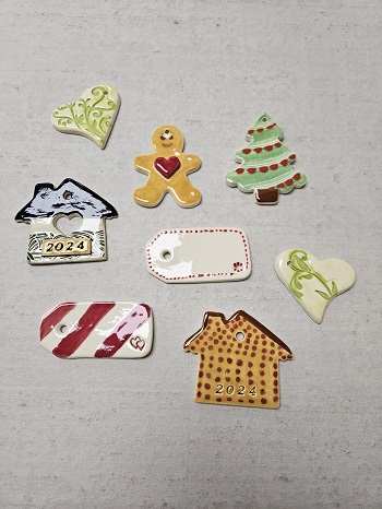 In the first class you will make several unique ornaments. Second class we will finish your ornaments by applying underglazes, and glazes. All material will be provided. All you need to do is show up and have fun!