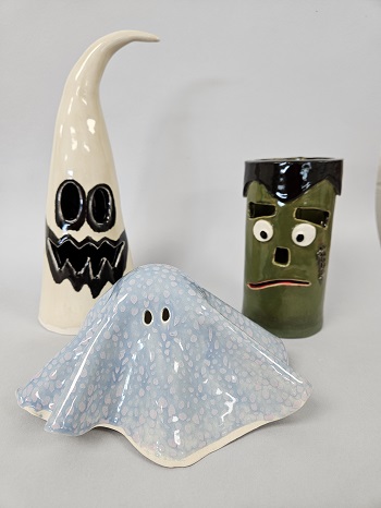 Make your house look festive for Halloween! Join us for this 2-day workshop and create spooky decorations like ghosts, pumpkins, lanterns, candy dishes and more! In the first class we will make the ceramic decorations. One week later, we will regroup and glaze each piece.